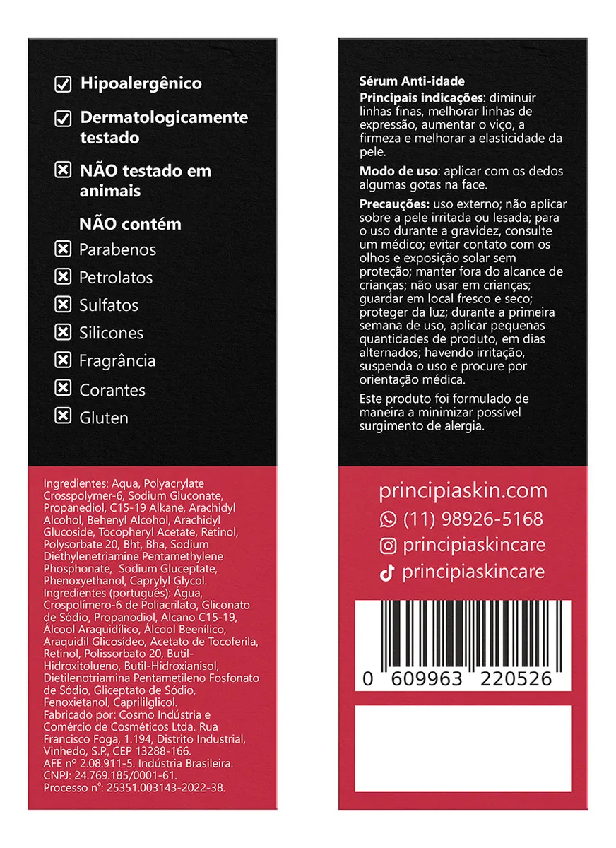 O Retinol 0,3% é um dos principais aliados no combate às linhas finas e rugas. Ele atua de maneira profunda, estimulando a renovação celular e promovendo uma textura mais lisa e uniforme. Combinado à Vitamina E, que é um antioxidante poderoso, este sérum proporciona proteção contra os radicais livres, ajudando a prevenir danos causados por fatores externos e mantendo sua pele saudável e equilibrada.